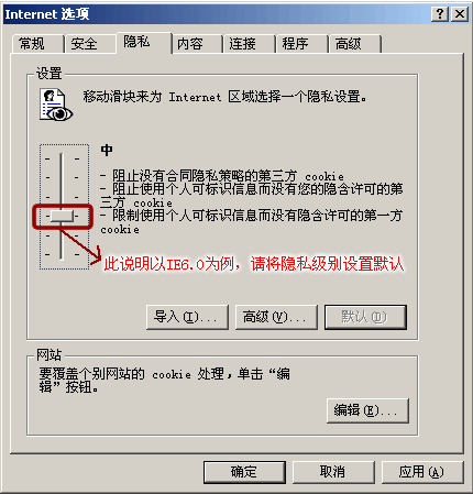 您可以點擊瀏覽器“工具”菜單中的“Internet 選項”,進入后選擇“隱私”,