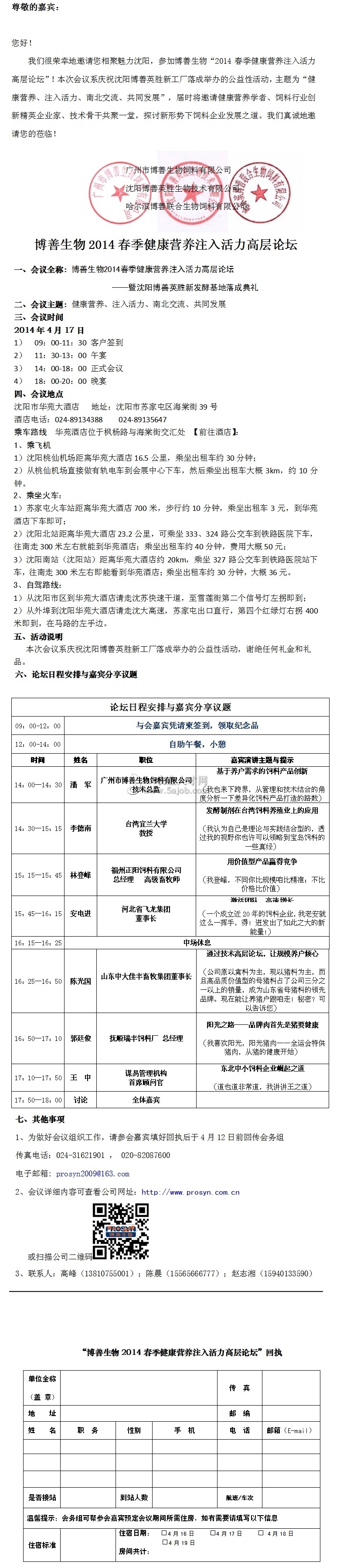 博善生物2014春季健康營養注入活力高層論壇邀請函(第二輪)