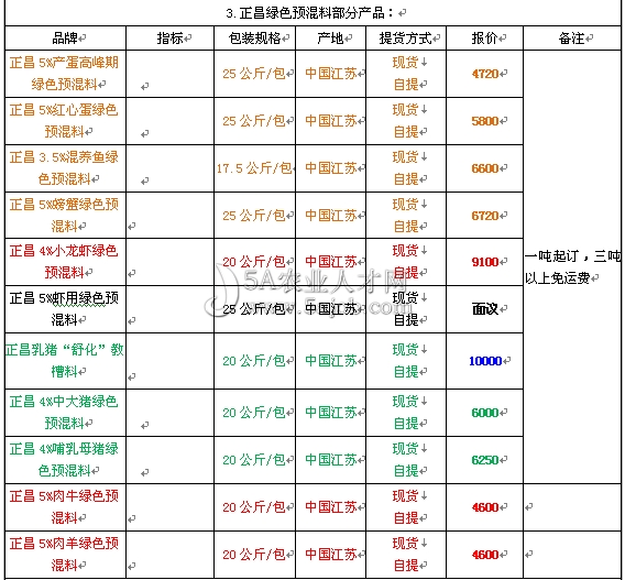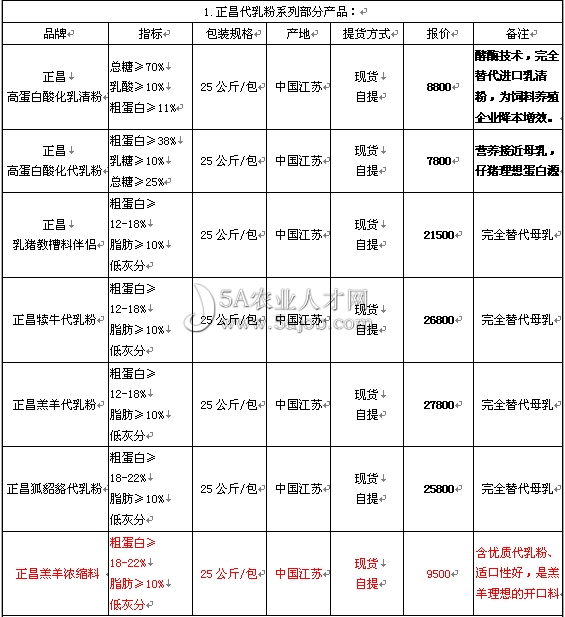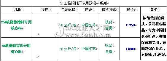 中外合資江蘇正昌飼料科技有限公司部分產品報價