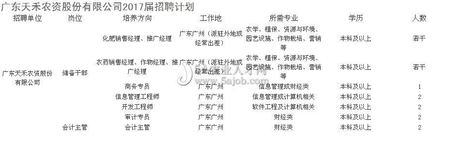 廣東天禾農(nóng)資股份有限公司2017屆招聘計劃