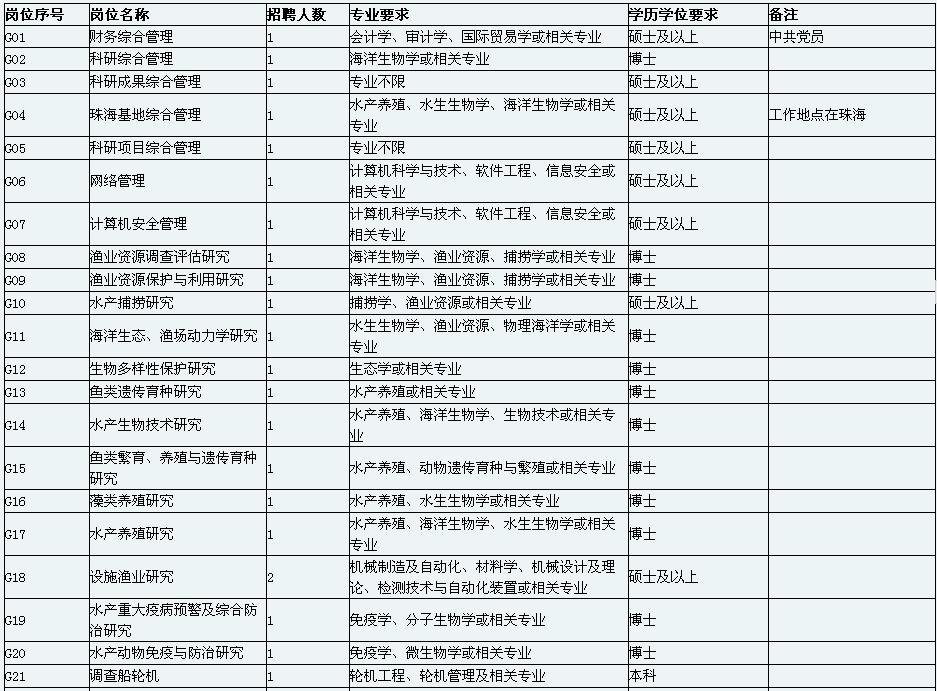中國水產科學研究院南海水產研究所創建于1953年,隸屬于農業部中國水產科學研究院,所本部駐地廣州,是從事水產基礎與應用基礎研究、水產高新技術研究和水產重大應用技術研究的國家級創新體系科學研究機構。為了加強人才隊伍建設,優化學科專業、崗位結構,現需招聘28名各類人才,具體要求如下: