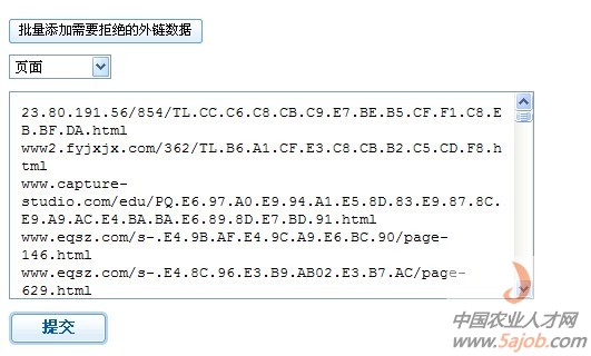 至此,大功搞成,等待百度站長平臺處理,但生效時間較慢,筆者的經驗大約是30天左右,本文由專業的垂直招聘網站農業畜牧人才網http://m.vistaarticles.com/原創轉載請注明出處,本文介紹的方法,簡單易行,關鍵是觀察垃圾外鏈的結構,如果有另外特殊的結構,修改其中的正則部分代碼即可,為了網站的良性健康發展,充分利用站長平臺提供給我們的工具也是非常必要的。